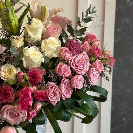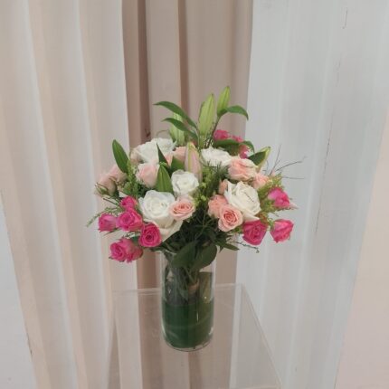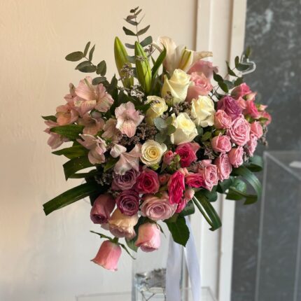 مجموعة من ازهار الليليوم مع الجوري والبيبي روز