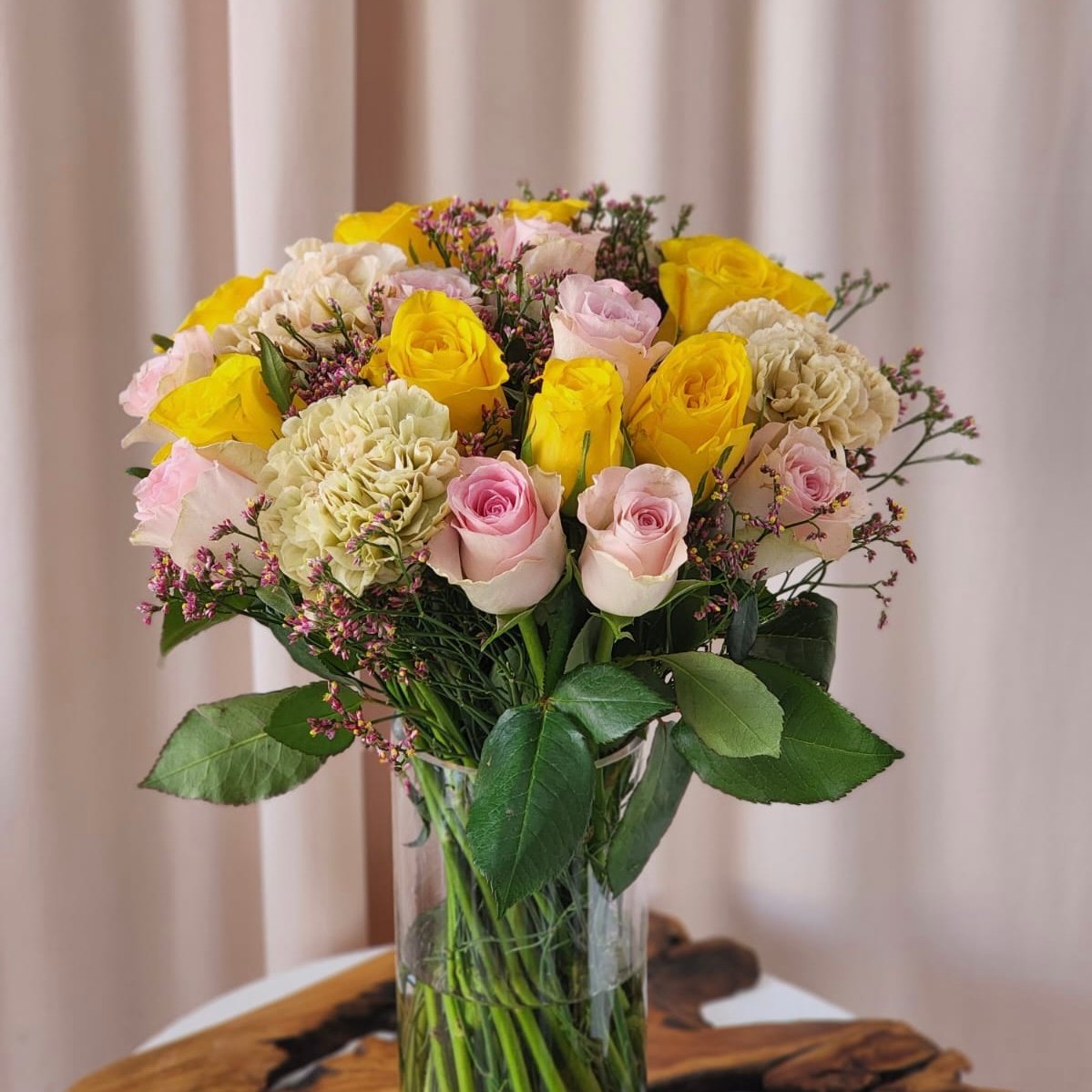 ورد جوري مع ازهار القرنفل بعدد 24 ورده