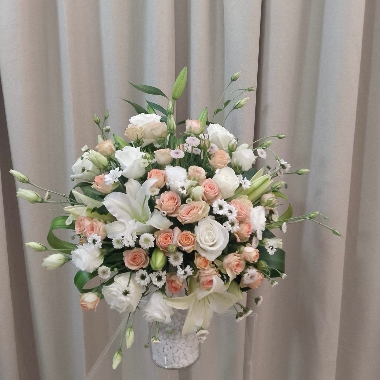 مجموعة لطيفة من ازهار البيبي روز مع الليليوم والبيبي كريز بمقاس متوسط